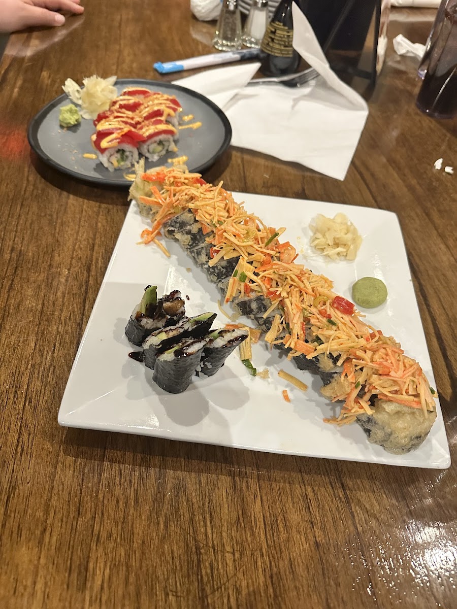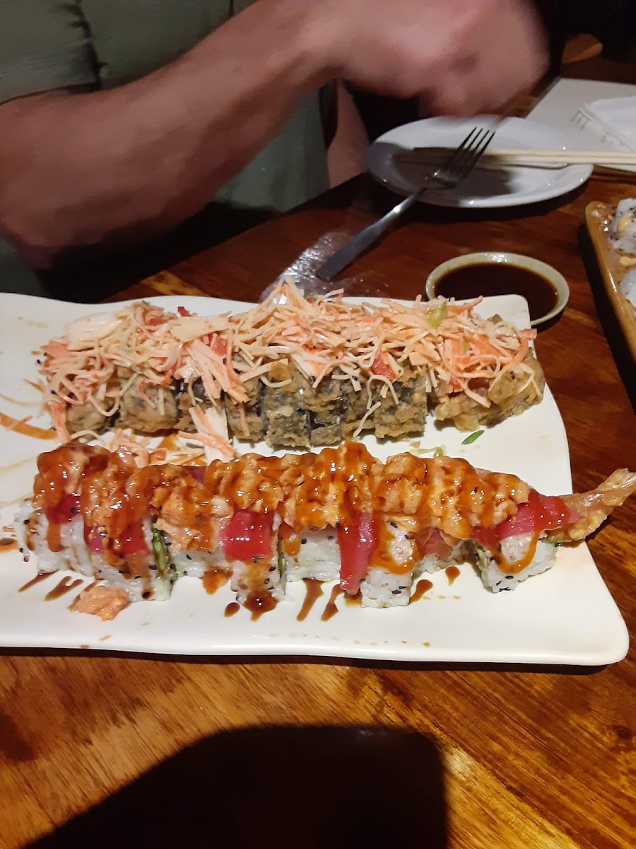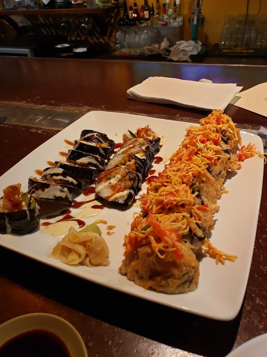 Tried the chefs special: a Peach Gin drink and a Crunchy Roll. Attentive staff, tasty food, open seats on a Saturday because of how large of a space it is- different areas to sit including outside and private room for parties.